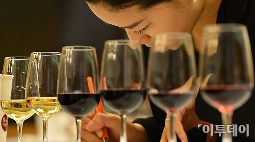 '제12회 한국 소믈리에 대회'가 27일 서울 강남구 코엑스 인터컨티넨탈에서 열렸다. 이날 대회에 참가한 소믈리에들이 와인의 맛과 향에 집중하고 있다. 양지웅 기자 yangdoo@