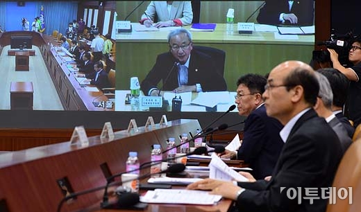 현오석 경제부총리(화면)가 27일 오후 정부세종청사와 서울청사에서 첫 영상회의로 열린 ‘경제관계장관회의’에서 모두발언을 하고 있다. 방인권 기자 bink7119@