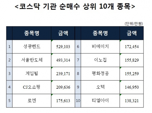 [코스닥 기관 순매수 상위 10개 종목]