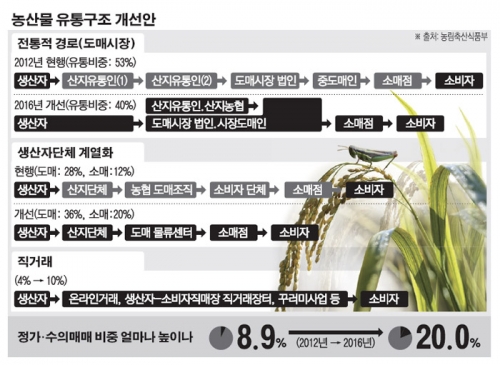 정부는 27일 관계부처 합동으로 이 같은 내용을 담은 ‘농산물 유통구조 개선 종합대책’을 확정·발표했다. 복잡하고 비효율적인 농산물 유통구조로 인한 높은 유통비용과 수급체계의 한계에 따른 가격의 불안요인을 해소하기 위한 조치다.