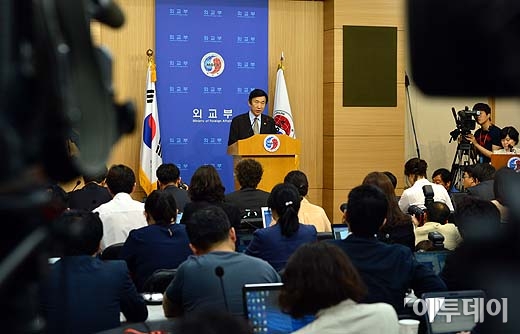 [포토]취임 후 첫 기자회견하는 윤병세 외교부 장관