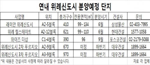 대우건설은 하반기 각각 A2-9블록(670여가구)과 A3-9블록(970여가구)에서 1640여가구를 선보일 예정이다. 포스코건설도 9월께 시범단지 C1-4블록에서 주상복합 '와이즈 더샵'(390가구)을 선보인다.