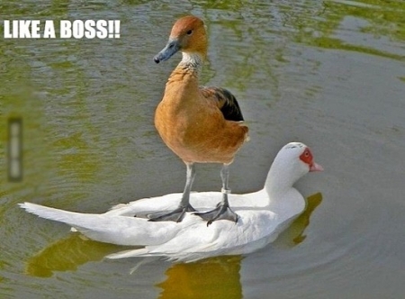 공개된 오리배 타는 오리 사진 속에는 갈색 오리가 호수 위에서 흰색 오리 위에 올라앉아 휴식을 취하고 있는 모습이 담겼다. 흡사 오리가 사람처럼 흰색 오리배를 타고 있는 모양새다.