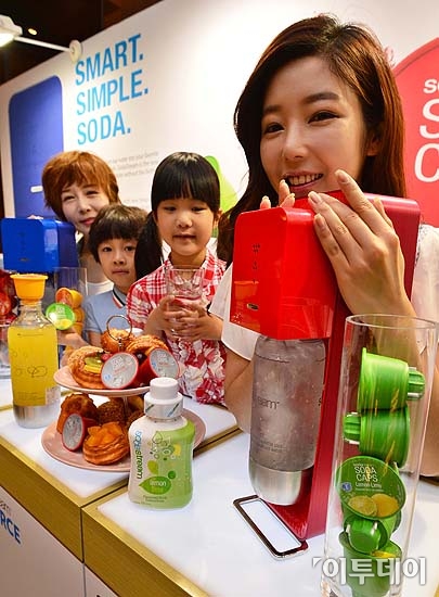 '소스'는 소다스트림과 신선한 물만 있으면 천연 탄산 기포를 내는 노즐을 통해 단 5초 만에 탄산수를 만들 있는 제품이다. 방인권 기자 bink7119@