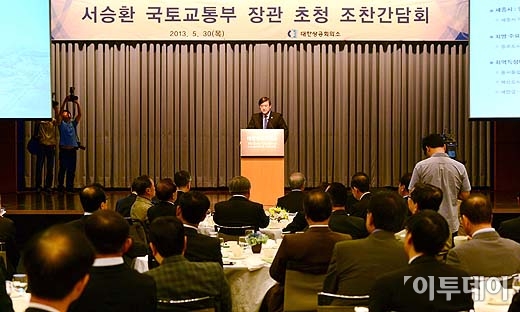 서승환 국토교통부 장관이 30일 오전 서울 중구 대한상공회의소에서 열린 조찬간담회에서 국토교통주요정책에 대해 강연을 하고 있다. 방인권 기자 bink7119@