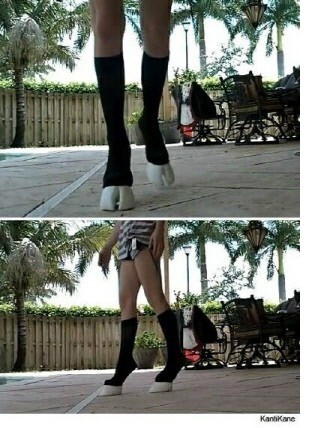 ‘속도 낼 것 같은 구두’로 불리는 이 구두는 ‘칸티’라는 이름으로 활동하는 미국의 아티스트이자 액세서리디자이너의 작품이다. 디자이너의 설명에 따르면 이 신발은 키가 커 보이게 하는 효과와 동시에 강한 개성을 표출할 수 있다는 장점이 있다.