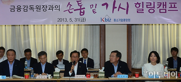 금융감독원장과의 손톱 밑 가시 힐링캠프가 31일 오후 여의도 중소기업중앙회에서 열렸다. 최수현 금융감독원장이 인사말을 하고 있다. 노진환 기자 myfixer@