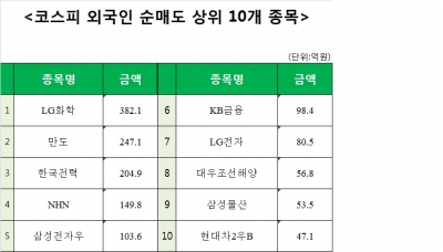 [코스피 외국인 순매도 상위 10개 종목]