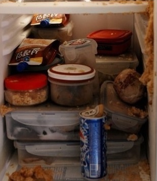 콜라가 부른 낭패 2탄 사진의 배경은 냉장고다. 냉동실에 넣은 콜라가 얼면서 팽창해 폭발한 것. 이에 냉동실은 콜라 때문에 엉망이 됐다.