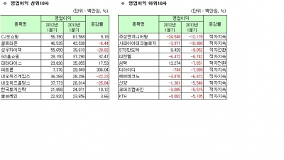 [2013년 1분기 코스닥]코스닥 연결기준 영업이익 상·하위 10개