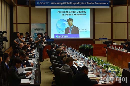 김중수 한국은행 총재가 3일 오전 서울 중구 남대문로 한국은행 본관에서 열린 ‘2013년 한국은행 국제컨퍼런스’에서 개회사를 하고 있다. 방인권 기자 bink7119@