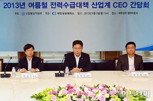 윤상직 산업통상자원부 장관이 3일 오후 서울 중구 대한상공회의소에서 열린 ‘2013년 여름철 전력수급대책 산업계 CEO 간담회’에서 인사말을 하고 있다. 방인권 기자 bink7119@