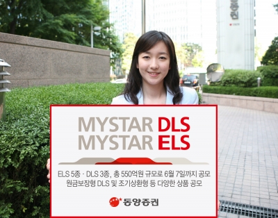 동양증권은 오는 7일까지 최고 46% 수익이 가능한 원금보장형 DLS를 비롯해 다양한 수익구조로 설계된 ELS 5종과 DLS 3종을 총 550억원 규모로 공모한다.