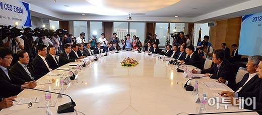 윤상직 산업통상자원부 장관이 3일 오후 서울 중구 대한상공회의소에서 열린 ‘2013년 여름철 전력수급대책 산업계 CEO 간담회’에서 모두발언을 하고 있다. 방인권 기자 bink7119@