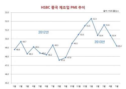 중소기업 비중 큰 HSBC 제조업 PMI 5월 49.2로 경기 위축 시사
