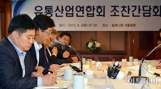김재홍 산업통상자원부 제 1차관이 4일 오전 서울 중구 밀레니엄힐튼 호텔에서 열린 유통산업연합회 조찬 간담회‘에서 모두발언을 하고 있다. 방인권 기자 bink7119@