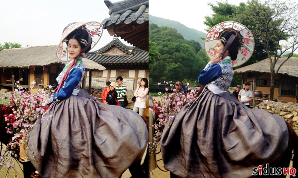 사진 속 이유비는 형형색색 꽃으로 화려하게 장식된 말에 앉아 한복으로 치장한 우아하면서도 요염한 꽃기생의 자태를 뽐내고 있다. 무엇보다 말 위에서도 한 점 흐트러짐 없는 고고한 자태를 과시해 현대판 꽃기생이란 감탄을 자아낸다.