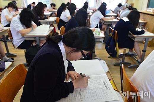 2014학년도 대학수학능력시험에 대비한 첫 모의평가가 실시된 5일 오전 서울 종로구 풍문여자고등학교에서 고3 수험생들이 시험을 치르고 있다. 방인권 기자 bink7119@