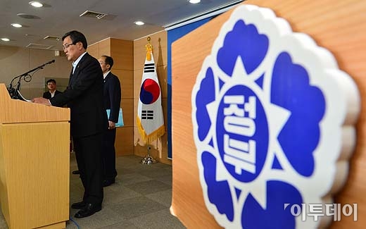 최문기 미래창조과학부 장관이 5일 오전 서울 세종로 정부서울청사에서 ‘관계부처 합동 창조경제 실현계획’을 발표하고 있다. 방인권 기자 bink7119@