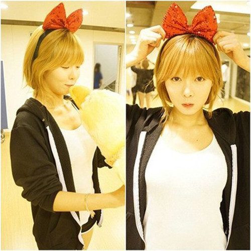 공개된 사진에서 현아는 검은색의 후드 집업 점퍼를 입고 빨간색 왕 리본 머리띠를 착용, 귀여운 표정을 짓고 있어 눈길을 끈다.