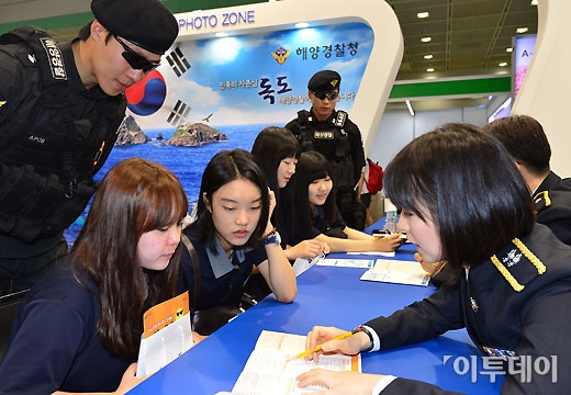 2013 공직박람회가 7일 서울 강남구 삼성동 코엑스에서 열렸다. 해양경찰청 부스를 찾은 고교생들이 취업상담을 받고 있다. 양지웅 기자 yangdoo@