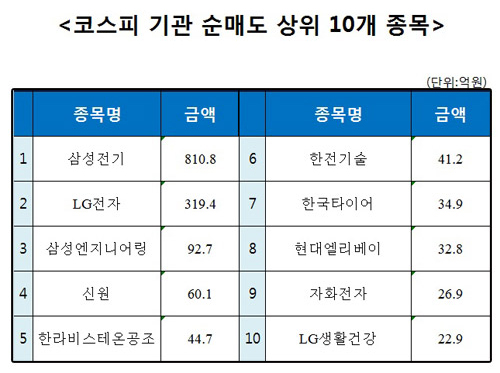 [코스피 기관 순매도 상위 10개 종목]