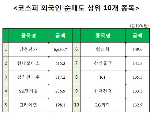 [코스피 외국인 순매도 상위 10개 종목]