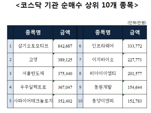 [주간 코스닥 기관 순매수 상위 10개 종목]