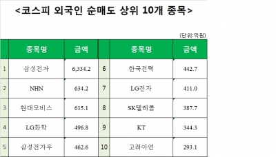 [주간 코스피 외국인 순매도 상위 10개 종목]