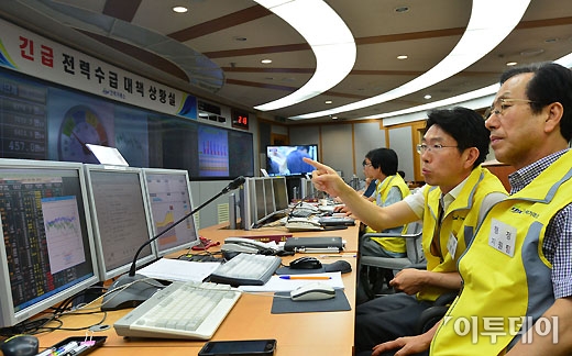찜통 더위가 이어지면서 전력 경보가 '준비단계'가 발령된 10일 서울 삼성동 전력거래소 내 긴급 전력수급 대책 상황실에서 직원들이 상황을 예의주시하고 있다. 양지웅 기자 yangdoo@