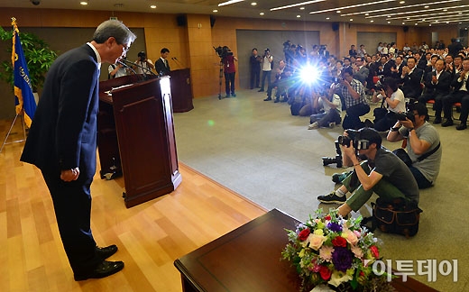 임종룡 농협금융지주 회장이 11일 서울 서대문 농협 본사에서 취임식을 가졌다. 이날 취임식에서 임 회장이 임직원들에게 인사하고 있다. 양지웅 기자 yangdoo@