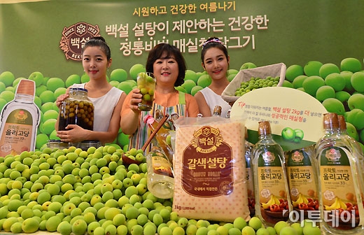 CJ제일제당 백설이 11일 롯데마트 서울역점에서 설탕과 올리고당을 활용한 정통비법으로 만드는 '매실청 담그기' 행사를 진행하고 있다. 양지웅 기자 yangdoo@