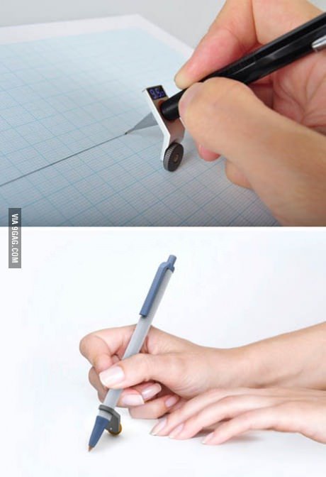 일반적으로 자 없이 직선은 긋는다는건 불가능하다고 알려져 있지만, 해당 게시물에서는 자 없이 말끔하게 직선이 그려져 있는 것을 볼 수 있다. 이는 볼펜에 작은 원형 롤러가 끼워져 있다. 이 원형 롤러로 자 없이 직선을 그릴 수 있는 것이다.