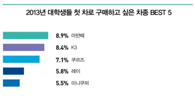 대학생들은 첫 차로 ‘아반떼’를 가장 선호하는 것으로 나타났다.