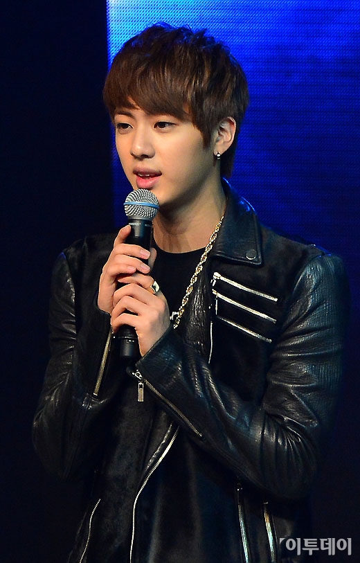 힙합 아이돌 방탄소년단(랩몬스터, 슈가, 진, 제이홉, 지민, 뷔, 정국)이 12일 서울 청담동 일지아트홀에서 데뷔 싱글 발매와 함께 쇼케이스를 열였다. 이날 쇼케이스에서 방탄소년단의 진이 인사말을 하고 있다. 양지웅 기자 yangdoo@