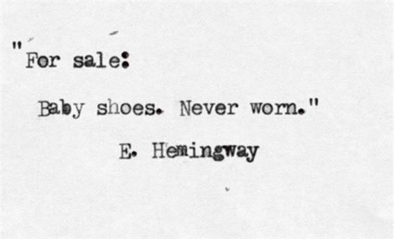 내용을 살펴보면 생전의 헤밍웨이에게 한 사람이 "여섯 단어로 소설을 써 사람들을 울릴 수 있다면 그대가 이긴 것"이라는 제의를 했다.