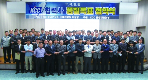 KCC는 협력사와의 동반성장을 위해서는 품질 경쟁력 확보가 가장 중요하다고 여겨 매년 협력사와 품질 목표 달성을 위한 협약을 체결해 왔다. 이를 통해 KCC는 자사의 품질 경영체계를 소개하고, 실무 위주의 품질 교육을 실시했다.