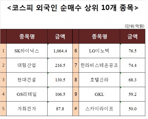[주간 코스피 외국인 순매수 상위 10개 종목]