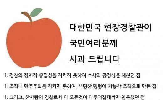 16일 온라인에는 빨간색 사과 그림과 함께 ‘대한민국 현장 경찰관이 국민여러분께 사과드립니다’라는 문구가 적힌 포스터가 등장했다.