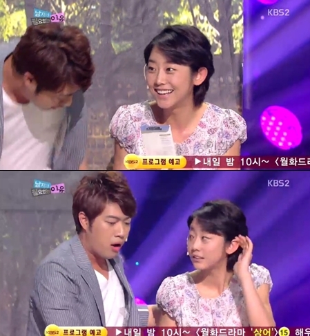 송인화는 ‘남자가 필요없는 이유’ 코너에 등장해 잘생긴 남자 서태훈이 양다리를 걸친 여성으로 등장했다.