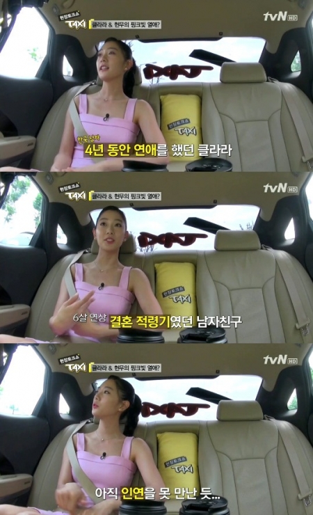 클라라는 17일 방송된 케이블채널 tvN '현장 토크쇼 택시'에 출연해 "가장 최근에 4년 동안 연애를 했었다"며 자신의 연애사를 전격 공개했다.