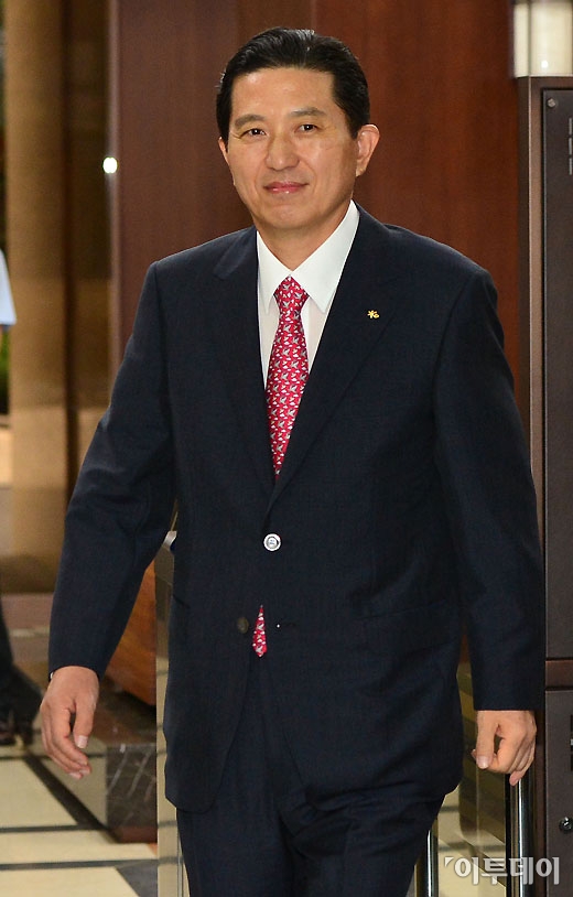임영록 KB금융지주 회장 내정자와 노조간 갈등이 대화를 통해 해소 국면으로 접어들었다. 임 내정자가 19일 서울 명동 KB금융지주 본사로 노조의 저지 없이 출근길에 나서고 있다. 양지웅 기자 yangdoo@
