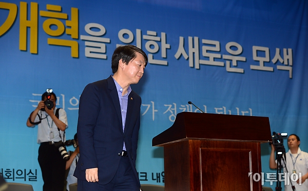 안철수 무소속 의원이 19일 오후 국회 의원회관 대회의실에서 열린 안 의원의 싱크탱크인 ‘정책네트워크 내일’ 창립기념 심포지엄에 참석해 인사말을 한 후 자리로 돌아가고 있다. 노진환 기자 myfixer@