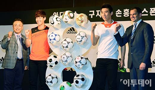 이날 아디다스는 축구 국가대표 구자철과 손흥민 선수와의 후원 계약을 오는 2018년까지 연장하며 앞으로 5년간 현금 및 용품 후원을 통해 두 선수가 브라질 월드컵 및 유럽 무대에서 활약을 펼칠 수 있도록 지원하겠다고 밝혔다. 방인권 기자 bink7119@