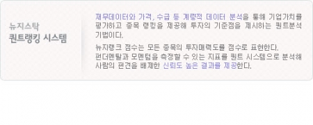 뉴지스탁 퀀트랭킹 시스템을 통해 미디어플렉스가 모멘텀 97점, 펀더멘탈 63점 등 종합점수 80점을 얻어 20일 유망종목에 선정됐다.