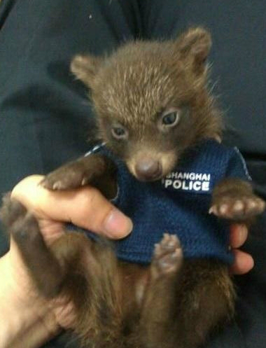 경찰들은 새끼너구리를 경찰서로 데려와 작은 경찰 제복을 만들어 너구리에게 입히고 중국 SNS인 웨이보에 사진을 올렸다는 후문이다.