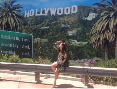 이 사진에는 한채아가 LA 명소인 할리우드를 배경으로 가드레일 위에 걸터앉은 채 하늘을 바라보고 있는 모습이 담겨 있다. 특히 한채아의 쭉 뻗은 각선미와 섹시 자태가 보는 이들의 시선을 사로잡았다.