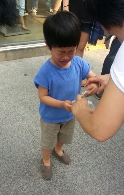 게시물 속 사진의 민율이는 거리에서 고개를 숙이고 뽑기를 하는 등 순수한 아이의 모습이다. 그러나 마지막 사진을 보면 사람들에 둘러싸인 민율이가 울음을 터뜨리고 있다.