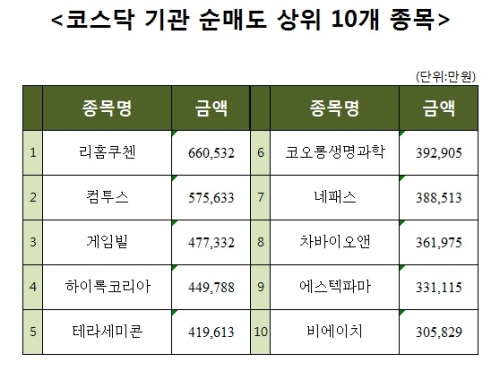 [주간 코스닥 기관 순매도 상위 10개 종목]