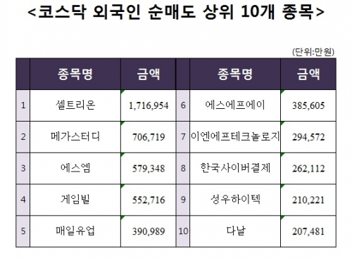 [주간 코스닥 외국인 순매도 상위 10개 종목]